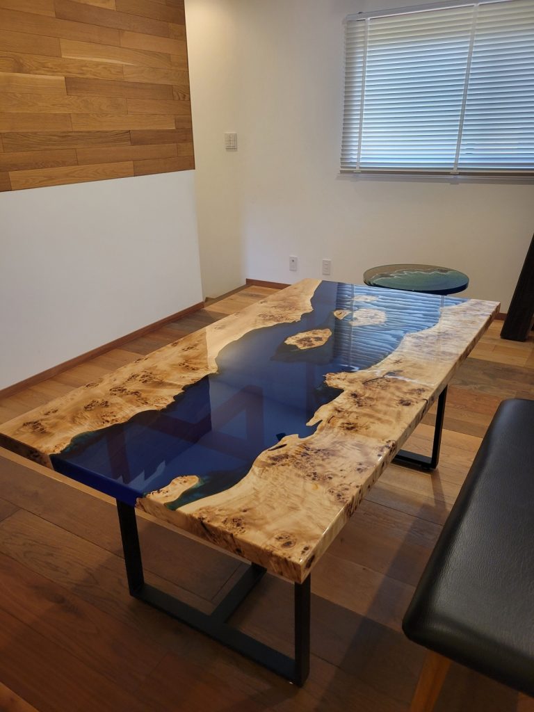 レジンテーブルの場合、小さな気泡や極小のやむを得ない筋や汚れ、反りについては許容範囲とさせて頂いています。