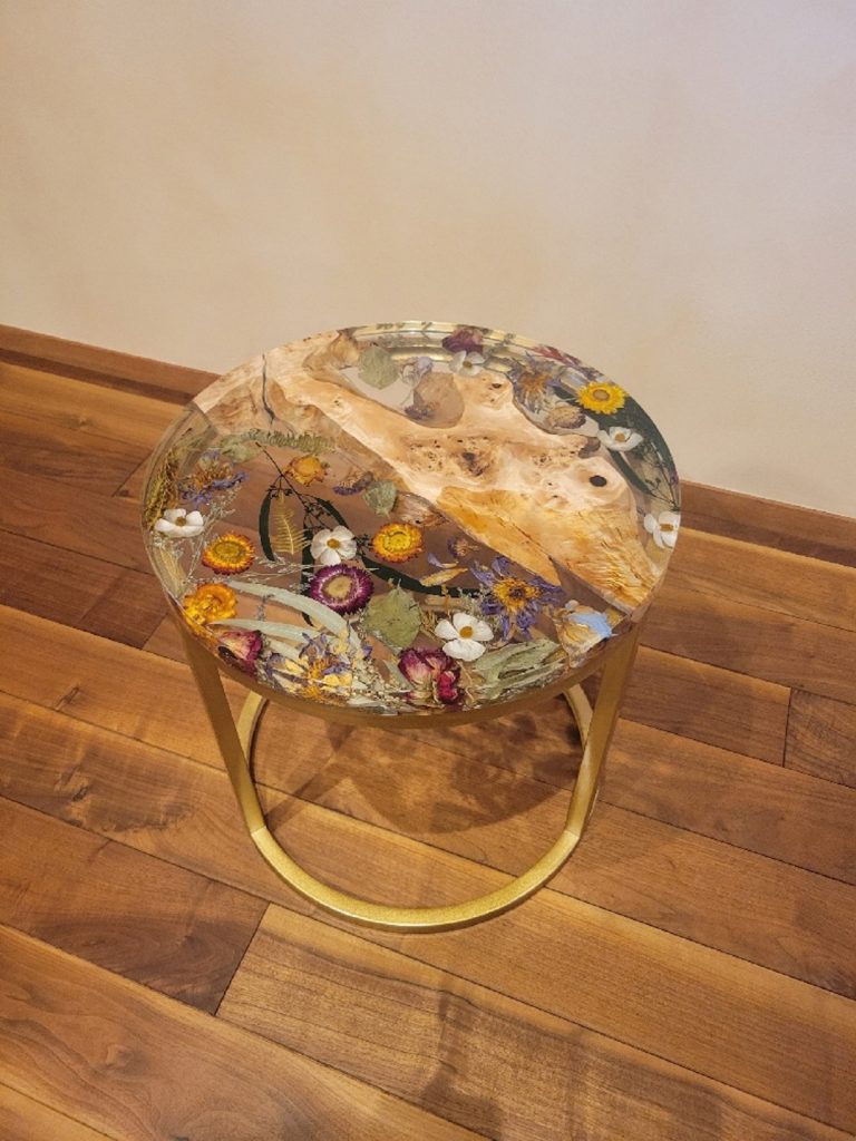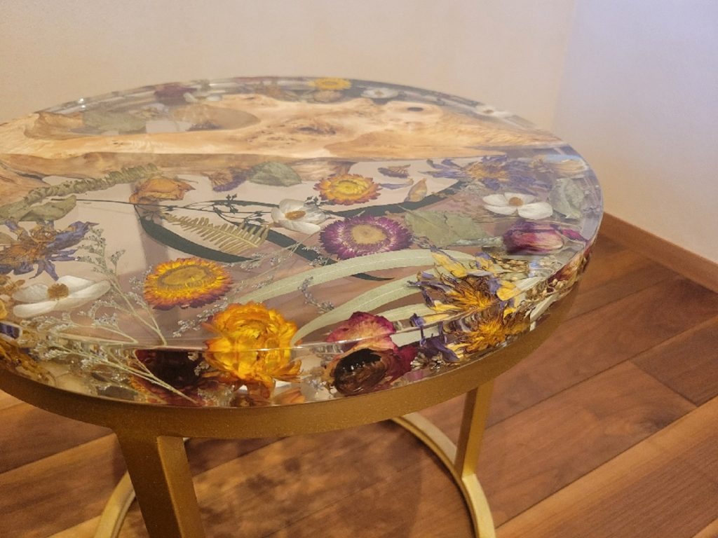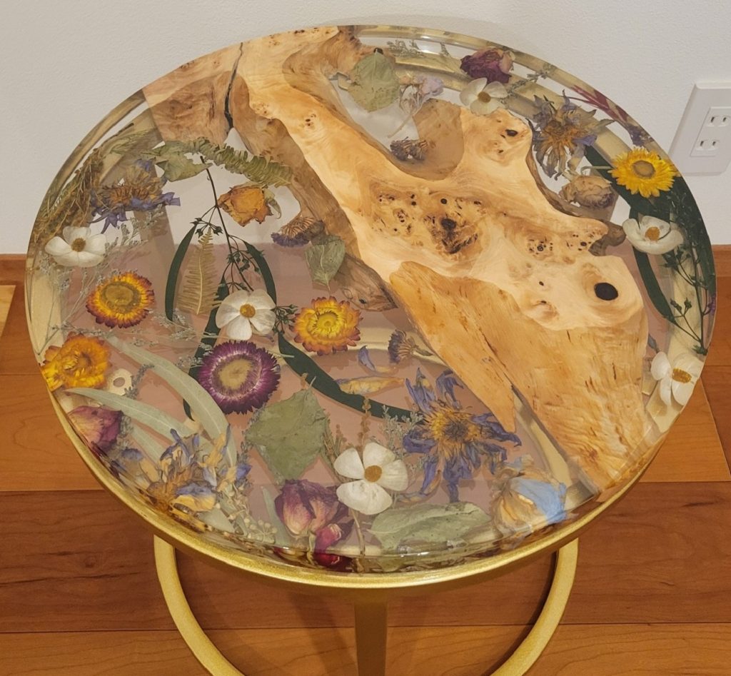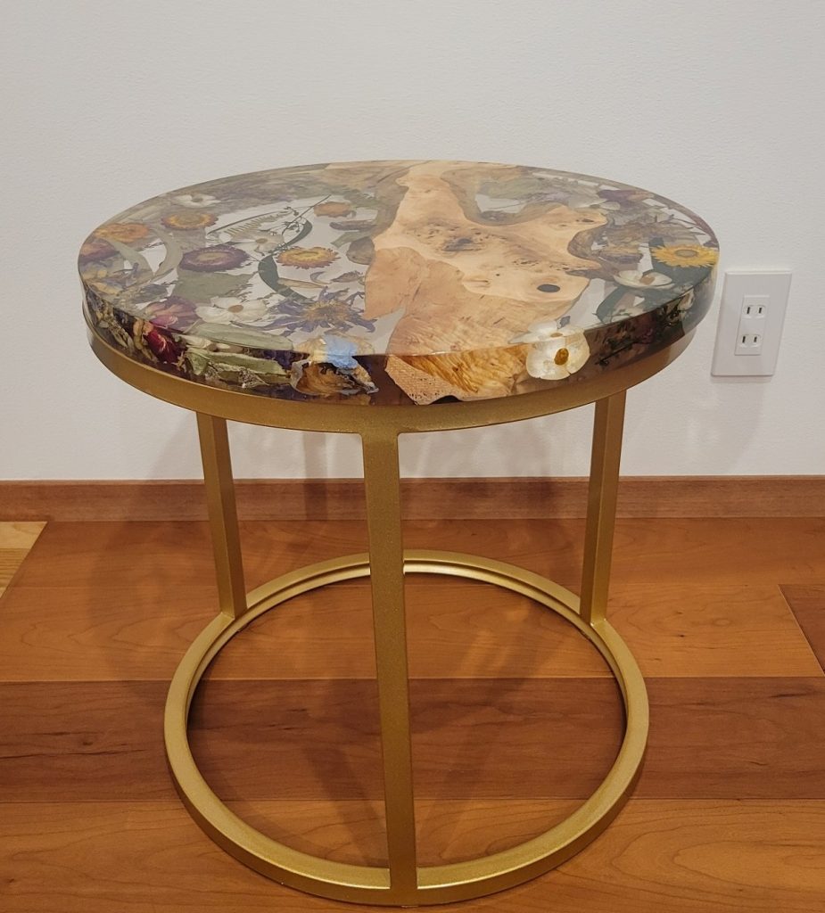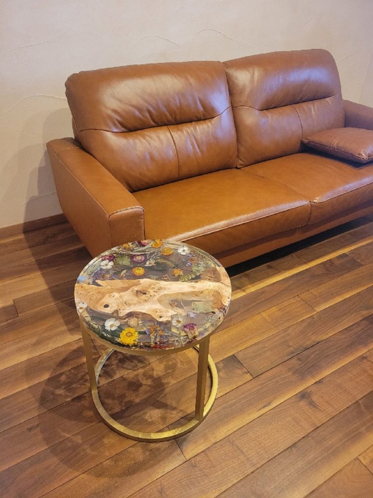 ◇イメージはプロヴァンス風レジンテーブル。プリザーブドフラワをクリアレジンで包みました。