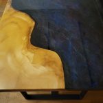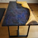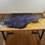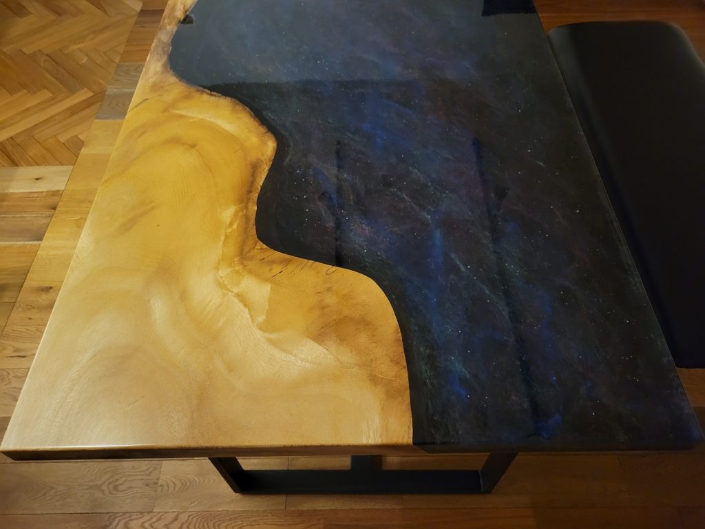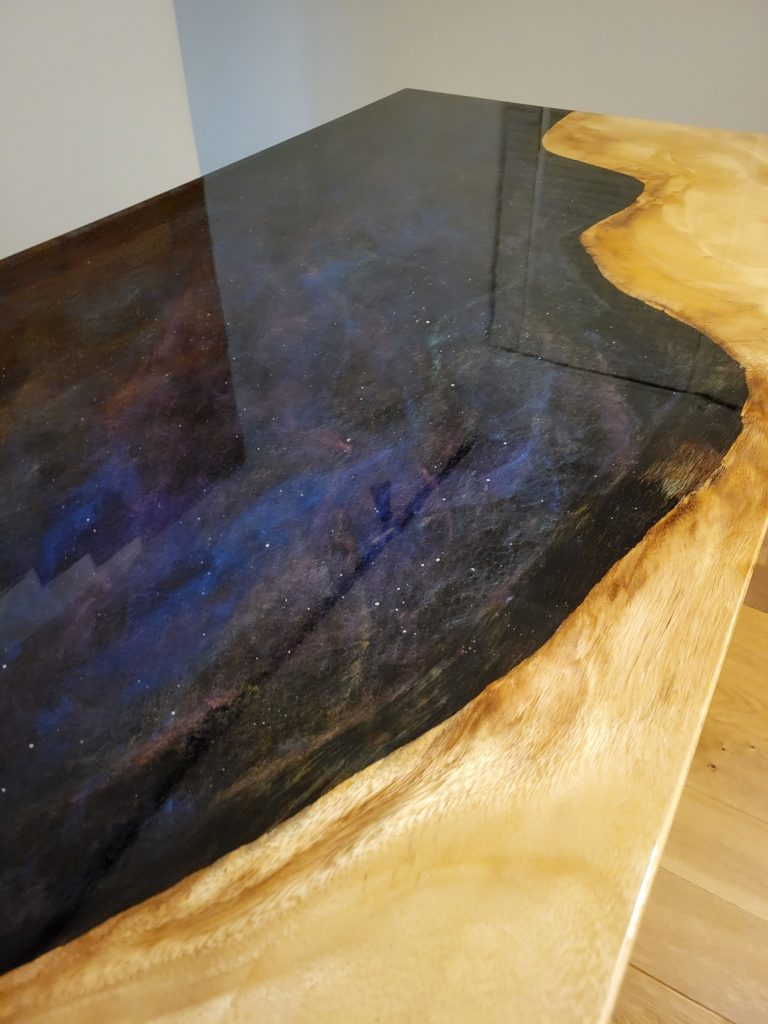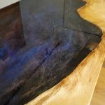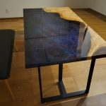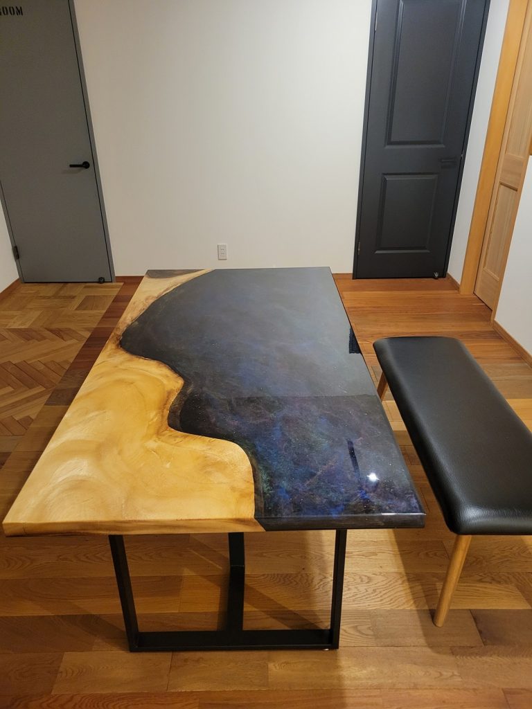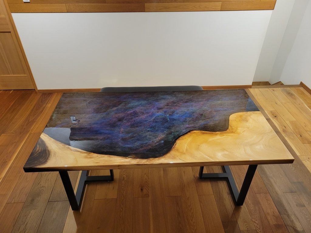 ◇圧巻の存在感。アート作品のレジンテーブル 惑星の陸面に使用しているのはモンキーポット材です。